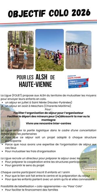 La Ligue de l’Enseignement de la Haute-Vienne vous propose un projet inter centre pour l’été 2026 :